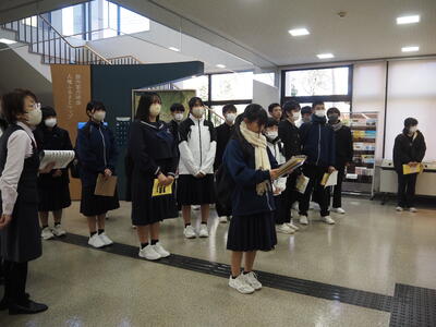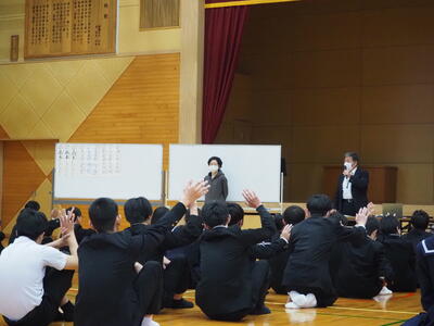 講演の最後に坂本さんから全校生徒に向けて、一人で悩ますに相談をしてほしいこと、自然を大切にしてほしいこと、戦争に行ってはいけないこと、そして、「水俣病は終わっとらん。」と訴えられました。最後に、人権委員長の小林倭雄さんがお礼の言葉を述べ講演会を終了しました。