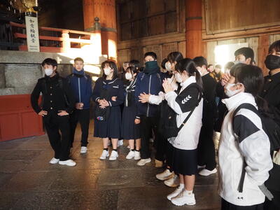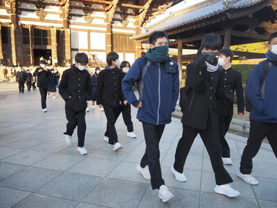 11月27日(木)6校時に、火災を想定した避難訓練を行いました。今回は、1年生は図書室に、2年生は教室に、3年生は体育館柔道場で授業が行われている設定でした。放送による火元をしっかり確認し、通常とは異なる避難経路で避難することができました。また、ハンカチ等で口や鼻を塞ぎながら避難することも概ねできていました。