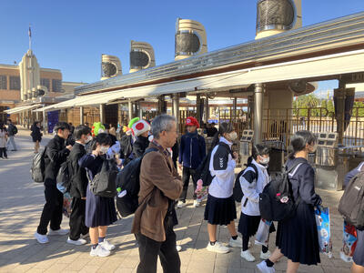 全員が避難したことを確認したのち、校長先生から講評をいただきました。その中で、火災はいつ・どこで起こるか分かりません。火災に遭遇したら冷静に、まずは火元がどこなのかきちんと確認すること、正しい情報を得ることが大切ですと話されました。