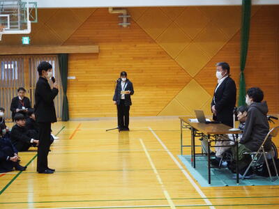 次に、会長候補、副会長候補にそれぞれに立候補した生徒とその責任者による演説会が行われました。どの候補者もこれまでの経験を元にした自己アピールや、どういう学校を創りあげていきたいか思いを語ってくれました。