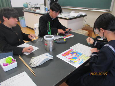 今回の連携授業を通して、学校の授業だけでは体験できない実験を行うことができ、生徒たちもイキイキとそして楽しそうに活動していました。八代高専のお二人の先生には、実験道具の準備から当日の授業まで大変お世話になりました。ありがとうございました。