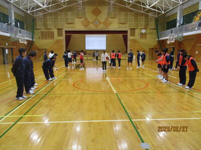 試合は、優勝決定戦が2年生同士の戦いとなり、優勝が2年生Cチーム、準優勝が2年生Bチームとなりました。どの生徒も試合中も含めて笑顔にあふれ、3年生も受験前に気分転換になったようでした。審判をしていただいた草野先生、村田先生大変ありがとうございました。
