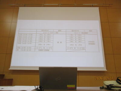2月12日(木)、来年度本校に入学予定である18名の児童・保護者向けに新入生説明会を本校体育館で実施しました。校長先生のあいさつの後、中学校生活について新執行部役員と新専門委員長が、プレゼンテーションソフトを利用しながら説明を行ってくれました。新委員長となって最初のお仕事で、少し緊張しながらも各委員会の活動内容等を説明してくれました。6年生の児童もしっかり話しを聴いてくれていました。生徒会の説明の後、本校職員から生活指導面、学習指導面、保健関係、事務関係の説明を行いました。最後に、通学カバンなどの物品購入や体育服等の採寸等を行い説明会を終了しました。