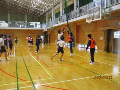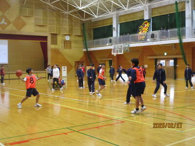 2月27日(金)5・6時間目に体育委員会主催によるクラスマッチを開催しました。競技はバスケットボールで行いました。各学年3~4チームを編成し、3つのリーグ戦を行った後、各リーグの勝者でトーナメントによる優勝決定戦を行いました。どの試合も白熱した戦いが繰り広げられましたが、試合をしていないチームも体育館2階のギャラリーから声援を送る姿も見られました。