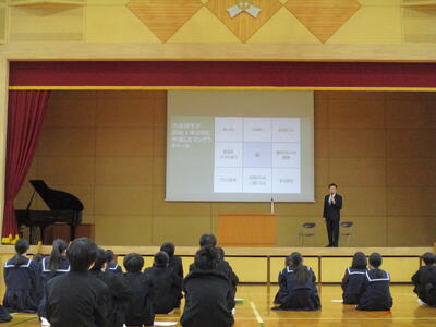 講話の内容は、二次的性徴や性的欲求、10代の妊娠、人工妊娠中絶、性感染症など多岐にわたってお話をしていただきました。義務教育最後の中学校をまもなく卒業するにあたって、一人一人がしっかりと講話の内容を受け止めてほしいと思います。