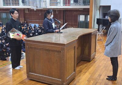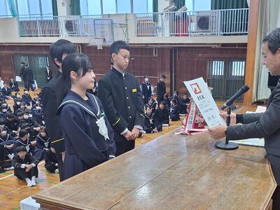 小中合同あいさつ運動が代陽小、松高小、八代小で行われました。272人あまりの生徒が自ら積極的に参加し、小学生のみなさんと各小学校の正門付近で元気に明るくあいさつを交わすことができました。