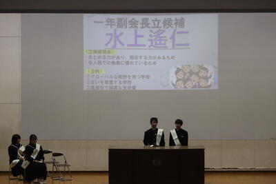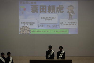 11月25日(火)の新生徒会の投票で、以下の3名が新役員に選出されました。伝統ある第一中学校のリーダーとして、活躍してくれることを期待しています。