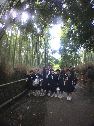 2年生の修学旅行2日目は、京都班別自主活動を行いました。どの班もそれぞれ協力して楽しく京都市内を見学してきました。全班、途中のチェックポイントである銀閣寺を時間通りに通過して、最後は集合場所の嵐山に無事に到着しました。お土産もたくさん買ったようです。今、夕食を済ませて、今日の宿泊地である大阪のホテルにバスで向かっています。明日はUSJに行きます。