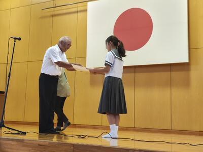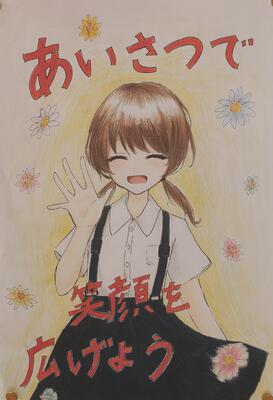 10月19日(日)に、八代校区「あいさつの輪運動ポスター」表彰式が、八代校区ふれあい祭りの中で行われました。一中で表彰されたのは、3年生の平井香帆さんでした。表彰式の様子とポスターを紹介します。