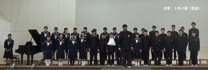10月31日(金)の午後、3年生の合唱コンクールをハーモニーホールで行いました。どのクラスも素晴らしい仕上がりで、聴いていて鳥肌が立ちました。全てのクラスに金賞をあげてもいいほどの出来映えだと思いました。2名の審査員の先生が厳正なる審査を行われた結果、以下の結果となりました。入賞したクラスの皆さん、おめでとうございます。惜しくも入賞を逃したクラスの皆さんも、これまでの頑張り素晴らしかったです。お疲れ様でした。