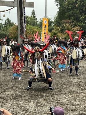 毎年10月にもなると,太鼓を叩く音が力強くなります。その音は里宮神社にまで届きます。