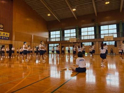 今年度は熱中症対策のため、午前中1,2校時の体育大会練習です。昨夜の雨のためグラウンドコンディションが悪く、体育館での実施となりました。新型コロナウイルス感染症拡大防止のため、団員は各々間隔を意識しながら練習しています。各団応援演舞が仕上がってきました。