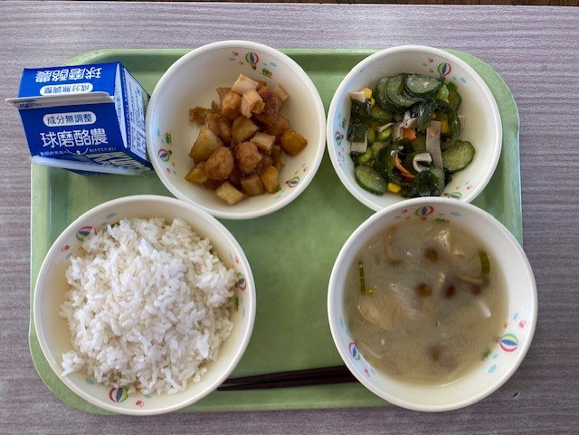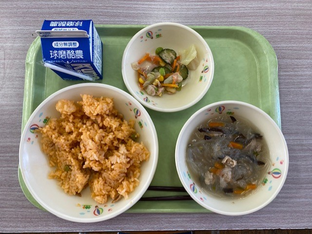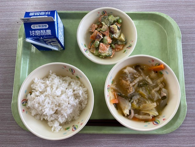 今日の献立は小学校2年生児童が考えてくれました。タイトル通り、栄養バランスがよく、健康的な食事になっています。