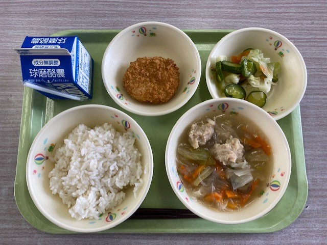 今日は手作りの肉団子スープです。味付けには、みそやしょうゆ、しょうがなどを使っています。