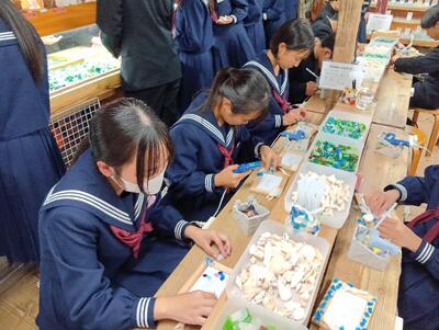 2年生【修学旅行】(むら咲むら) 投稿日時 : 12/11 管理者 むら咲むらに移動し、体験活動を行いました。フォトフレームや海の時計などの作成体験に熱心に取り組んでいました。 {{options.likeCount}} {{options.likeCount}}