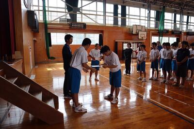 8月30日土曜日、中学校の除草作業後に3年生の学年行事としてドッジボール大会を実施しました。生徒2チーム、保護者1チームの総当たり戦を行い、時には本気で、時には子どもが手加減するプレーで白熱した戦いが繰り広げられました。夕方からは、BBQでさらに親睦を深めました。