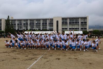 全学年ダンスでは生徒が振り付けた踊りでみんなの笑顔があふれていました。競技中は互いに鼓舞しあい、保護者からも熱い声援が送られ盛り上がりました。