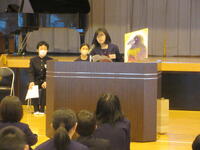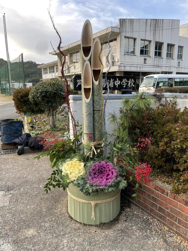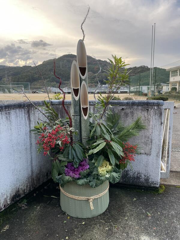 3年生が学校の正門に門松を作りました。地域の方が協力してくださって立派な門松が完成しました。ありがとうございました。