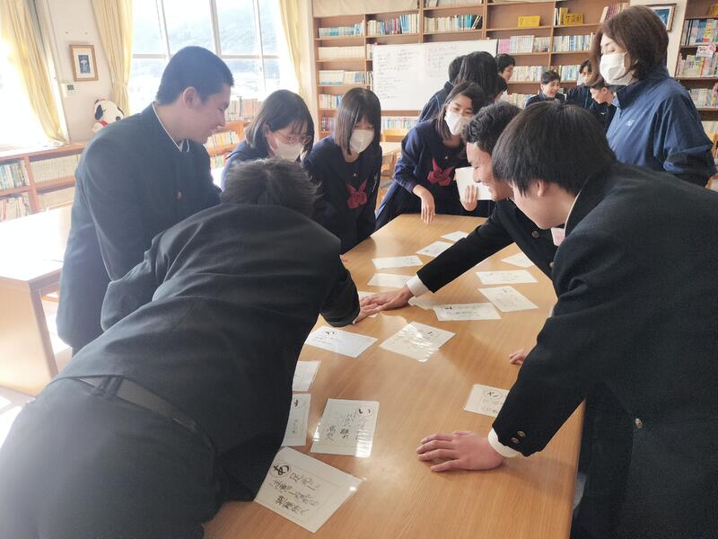 図書文化委員会主催による防災カルタ大会が図書室で開かれました。