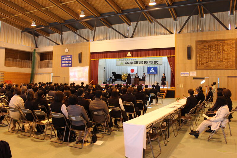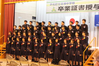 よく晴れた今日、湯浦中学校で卒業証書授与式がありました。