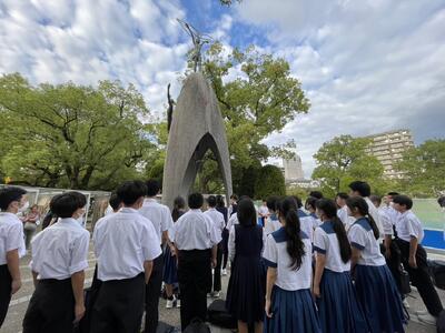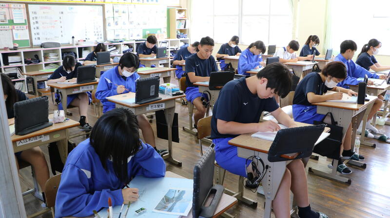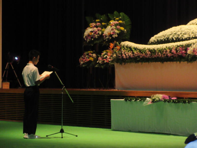 また、9月30日に行われた「令和7年度芦北町戦没者追悼式」では、町内中学生代表として2年生の鳥江君が「平和への願い」を発表した。広島や長崎に落とされた原爆のこと、戦争の悲惨さ、身近な曾祖父の話をもとに発表した。これからも戦争を体験された人々の話を引き継ぎ、絶対に戦争はしてはいけないと訴えた。これから、自分は、差別や偏見をなくし見て見ぬふりをしないで、周りの人を助けられるような人になりたい。としっかりと伝えることができた。