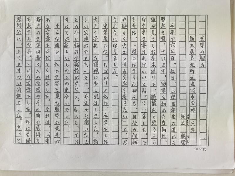 何人もの校長先生から「湯浦中の返事が一番よかったよ。」