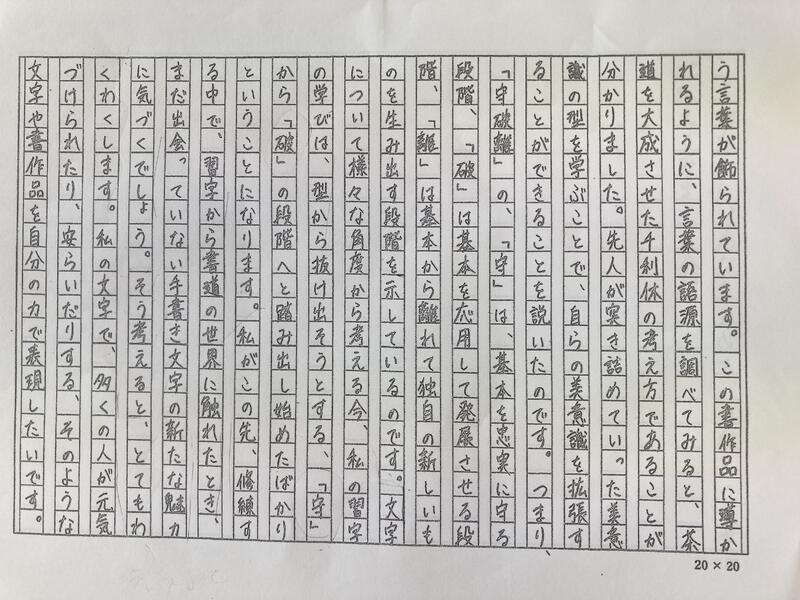 「今日の講話で少し勉強はしていたけど、改めて話を聞いて、差別というのは本当にやってはいけない事だと思ったし、差別されても立ち上がれるしのぶさんの心がすごいなと思いました。また、立ち上がれたのは同じ仲間がいたおかげという話を聞き、仲間って大事なんだなと再認識することができました。