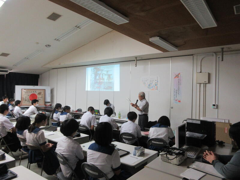 講師の梅田先生や胎児性水俣病患者の坂本しのぶさんの話を一生懸命聞く姿が見られた。ワークシートにぎっしりとメモを取っているIさん、表だけでは足りず裏にまでメモを取るOくん、坂本さんの好きな食べ物ハンバーグを絵に描いて最後渡してくれたFさん。お礼の言葉で「深く学ぶ人になりたい」と述べたAさん。