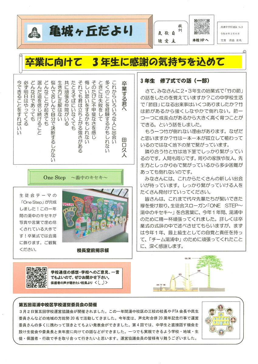 亀城ヶ丘だより(湯浦中学校通信№.9)